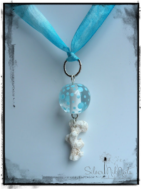 And at the last minuite (hence the bad photo) I used up the lovely piece of coral, beautiful colored ribbon and one of my new Moogin beads on this little cutie.....